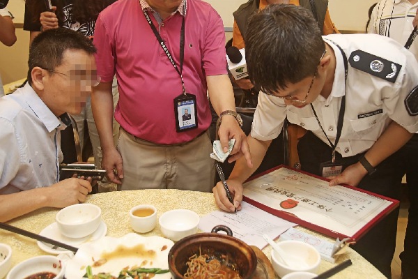 南方網(wǎng)訊 深圳5月份餐飲服務(wù)場(chǎng)所控?zé)焾?zhí)法督查行動(dòng)正式打響,羅湖區(qū)成為了此次控?zé)焾?zhí)法督查的第一站。5月8日晚,執(zhí)法人員突擊檢查了羅湖區(qū)鳳凰路鳳山大廈附近餐飲服務(wù)場(chǎng)所。記者發(fā)現(xiàn),小餐館里違法吸煙的現(xiàn)象仍比較多,一些顧客面對(duì)突如其來(lái)的控?zé)煓z查甚至惱羞成怒。檢查過程中,2家違反了《深圳經(jīng)濟(jì)特區(qū)控制吸煙條例》的經(jīng)營(yíng)場(chǎng)所被警告處理,2名違法吸煙的市民被口頭教育并領(lǐng)取50元的罰單。