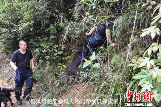 當?shù)鼐浇拥綀蟀负,派出警犬和無人機助陣;德慶縣和封開縣兩地警民共200余人合力圍捕。廣東省公安廳飛行隊還派出直升機參與搜捕。