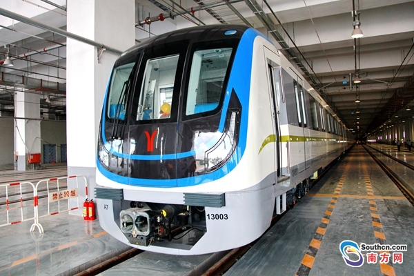 據(jù)南方網(wǎng)報道,經(jīng)過10多天兩千多公里的長途跋涉,28日,十三號線首列8節(jié)編組列車抵達(dá)廣州地鐵官湖車輛段。