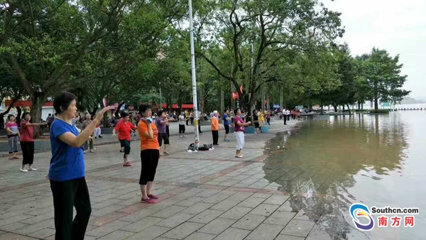 據(jù)南方網(wǎng)報(bào)道,7月4日上午8時(shí),記者從肇慶封開縣舊縣城江濱公園看到,昨天傍晚起天氣由雨轉(zhuǎn)陰,上午8時(shí)許雖然可見烏云,但是舊縣城水位開始下退,江濱公園迎來了一大批晨運(yùn)的市民。