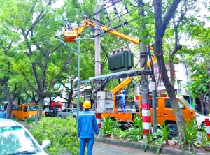 昨天上午,潮州市相關(guān)部門對(duì)路樹進(jìn)行修剪加固。