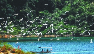 大洋網(wǎng)訊 國(guó)慶中秋過后,流溪河國(guó)家森林公園迎來了今年最大群的“游客”,逾千只白鷺,在碧綠的湖面上呈現(xiàn)“一行白鷺上青天”的美景。公園管理方告訴廣州日?qǐng)?bào)記者,近期冷空氣南下,北方普遍降溫,促使第一批候鳥來廣州“嘆”世界。