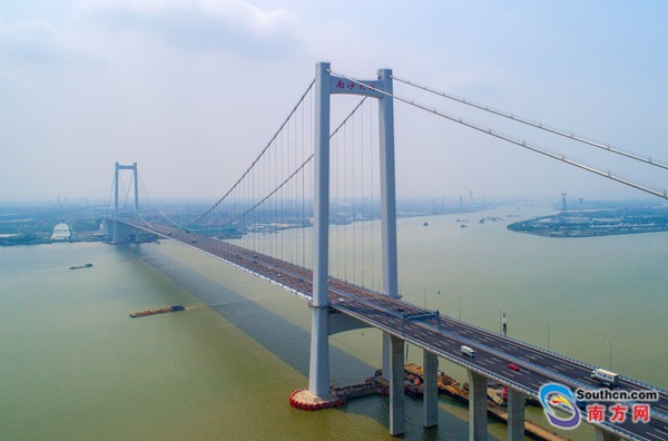 4月2日上午10時(shí)許,世界第一跨度鋼箱梁懸索橋——南沙大橋(即虎門二橋項(xiàng)目)宣布通車,中午12時(shí),大橋正式向社會(huì)車輛開放通行。通車后,橋面交通較為順暢,井然有序。