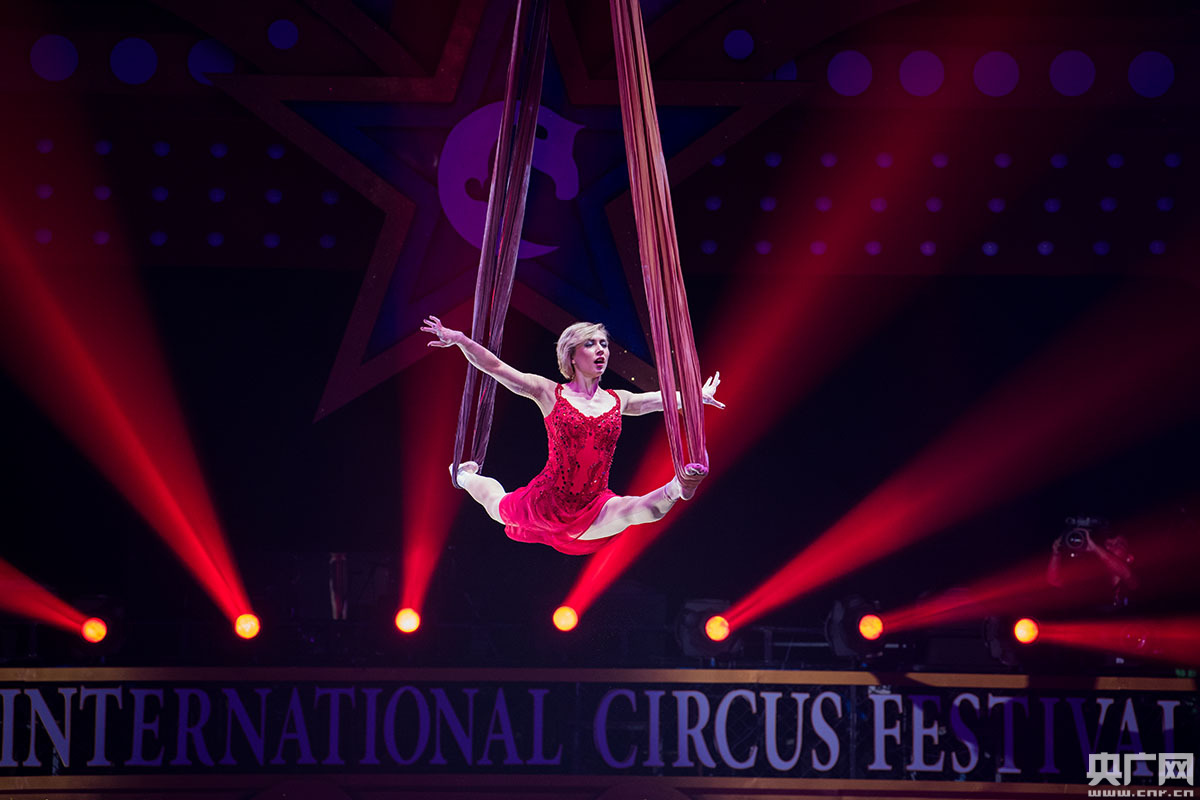 節(jié)目《永無止境-女子綢吊》(俄羅斯)。(央廣網(wǎng)記者 官文清 攝)