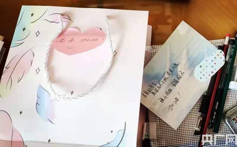 考前,工作人員給姐妹倆打印了準考證,隔離酒店還為她們準備了考試用品禮包。禮包里面有一張加油卡片,上面寫著“歷盡千帆 得償所愿”“旗開得勝 金榜題名”等字樣。