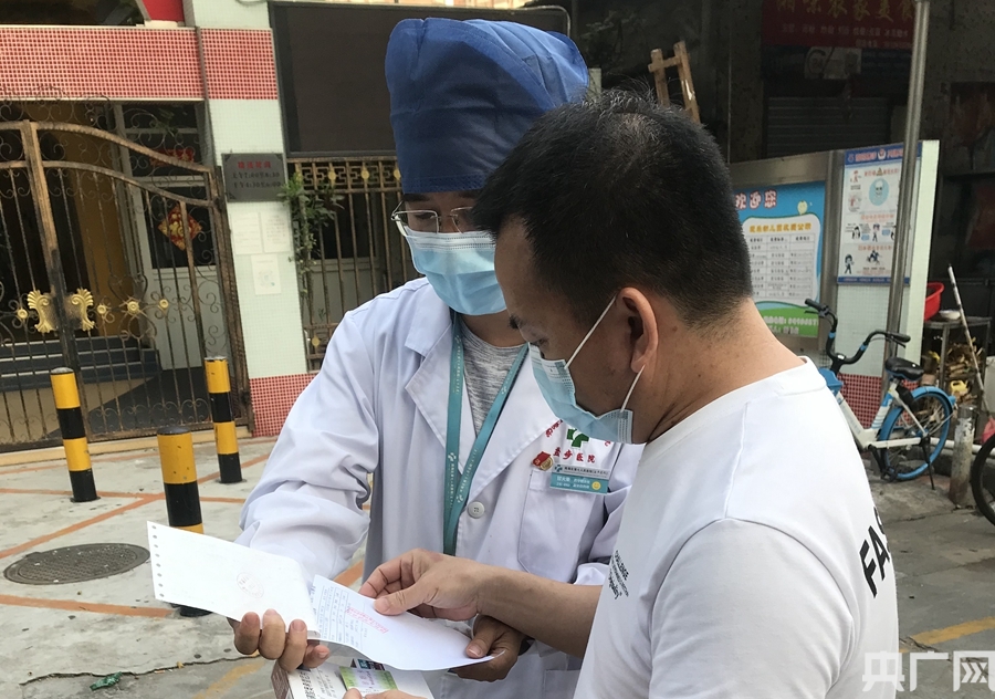 醫(yī)生甘火榮向謝先生囑咐藥物使用注意事項(央廣網(wǎng)發(fā) 通訊員供圖)