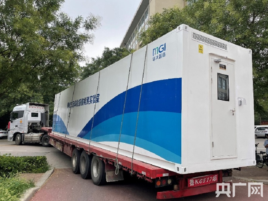 華大智造移動(dòng)集成式檢測(cè)艙到達(dá)河南省鶴壁市提高當(dāng)?shù)氐暮怂釞z測(cè)能力 (央廣網(wǎng)發(fā) 華大智造供圖)