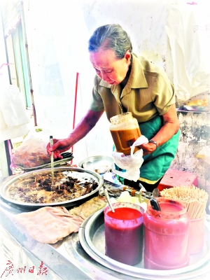這輛具有標(biāo)志性意義的小推車,主人名叫陳桂姐,今年已經(jīng)80歲,是廣州著名小吃“阿婆牛雜”的創(chuàng)始人。當(dāng)小推車出現(xiàn)在街邊時(shí),街坊們都流露出欣喜之情,“牛雜阿婆終于要回來了”。