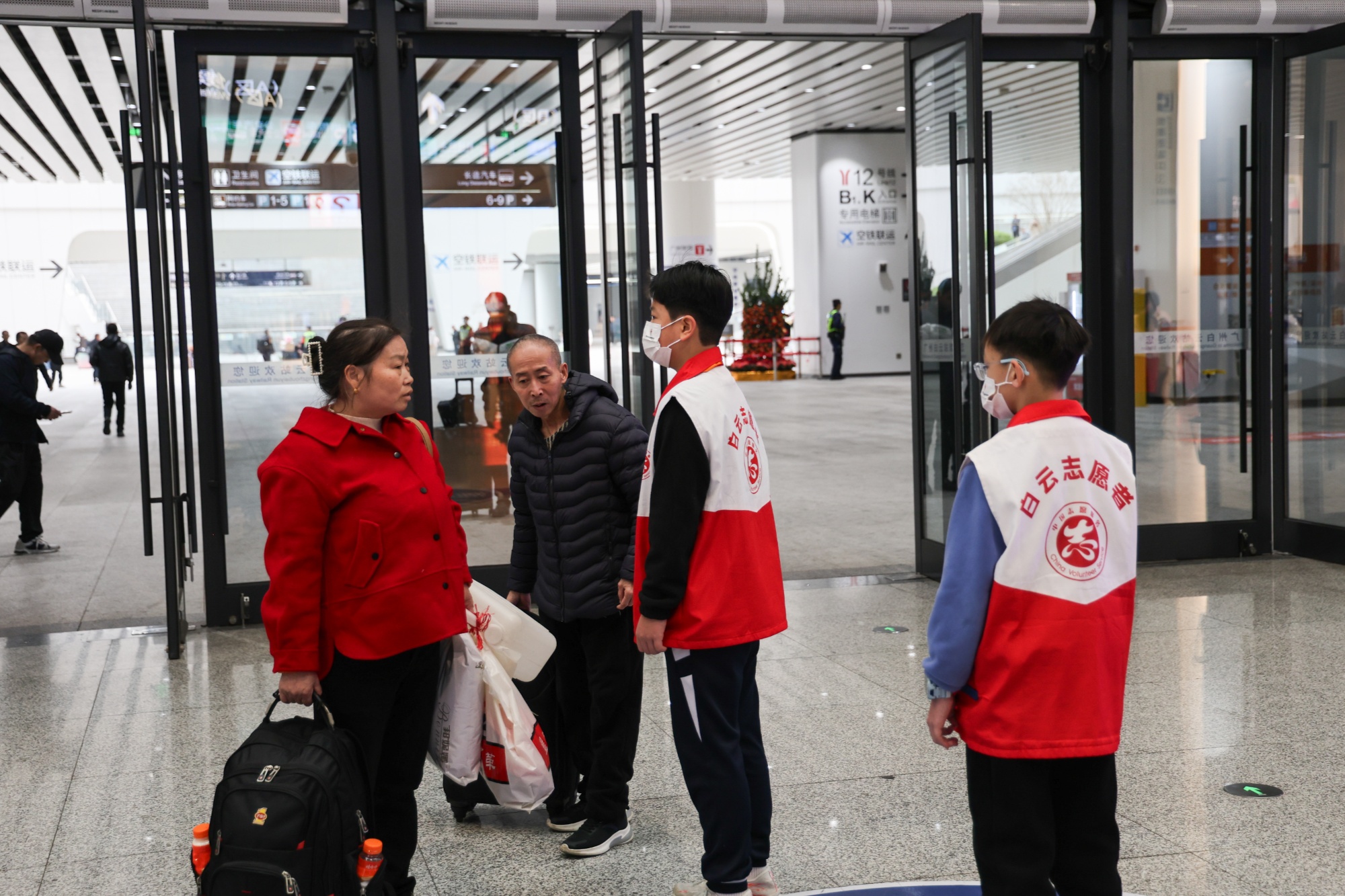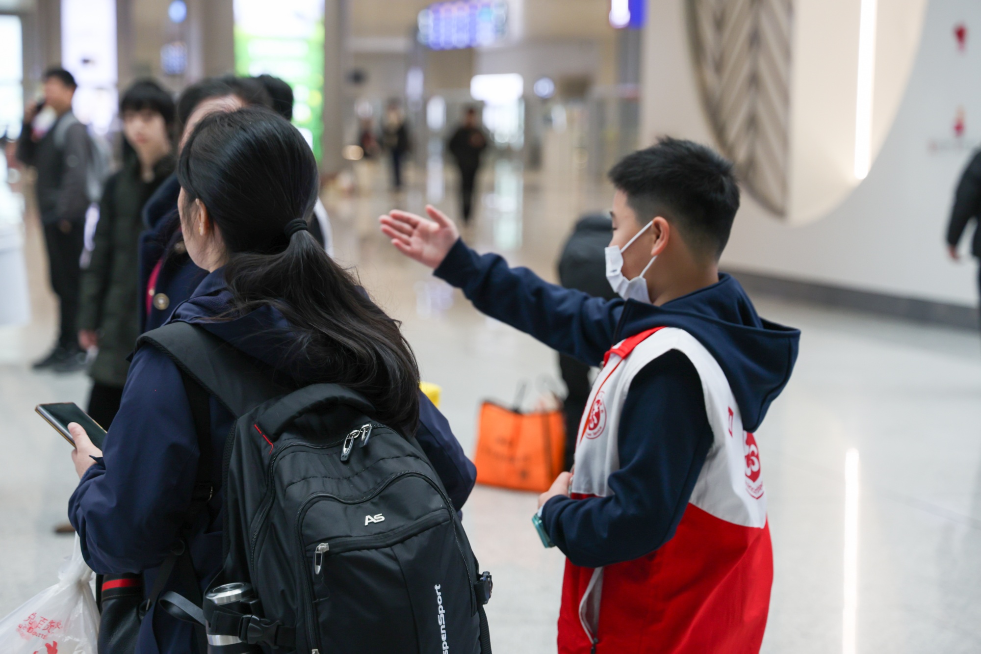志愿者周翊軒為旅客做指引