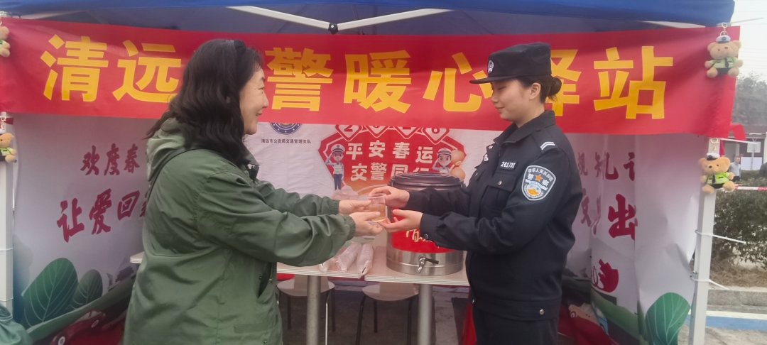 在服務(wù)區(qū)內(nèi)的暖心驛站,幾位正在接熱水的乘客吸引了記者的注意。帶著明顯北方口音的劉先生和朋友從東莞自駕回湖南過(guò)年,“我們一路北上,擔(dān)心進(jìn)入清新區(qū)的服務(wù)區(qū)會(huì)很堵,嘿!沒(méi)想到居然能借用對(duì)面服務(wù)區(qū),還有這么清楚的指引,一路順滑就進(jìn)來(lái)了!眲⑾壬哉Z(yǔ)中滿是驚喜,“這辦法太聰明了,咱們老家高速要是也能學(xué)學(xué)就好了!”他的同伴也連連附和:“確實(shí)得為廣東交警點(diǎn)個(gè)贊,又智慧又務(wù)實(shí),實(shí)實(shí)在在解決了難題!