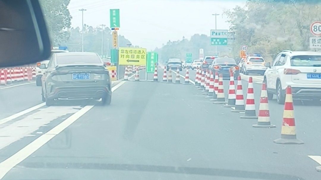 針對(duì)公眾可能擔(dān)心的對(duì)向車(chē)流沖突問(wèn)題,交警部門(mén)采取了扎實(shí)措施。南行服務(wù)區(qū)內(nèi),借道區(qū)域被完全物理隔離,標(biāo)志清晰。南行車(chē)輛則通過(guò)專用通道繞行,不與北行借道車(chē)流交叉。