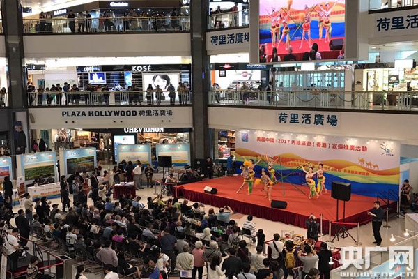 記者在現(xiàn)場看到,荷里活廣場一層中間地帶,來自內(nèi)地旅游部門和業(yè)界代表組織的展位擺放的整整齊齊。除了文字圖片介紹資料,包括兼職、刺繡在內(nèi)的非物質(zhì)文化遺產(chǎn)展示吸引了不少香港民眾的目光。而在舞臺之上,部分少數(shù)民族美輪美奐的表演,更贏得陣陣掌聲。