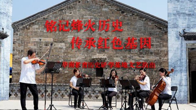 廣州交響樂團首席、副團長張毅與“飛·粵”四重奏在現場演繹獨奏與弦樂四重奏《第一小提琴協奏曲》片段。該首曲目由著名音樂家馬思聰1943年作于粵北。