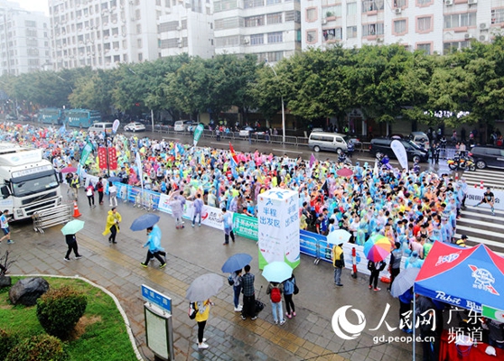 近1.5萬名海內(nèi)外選手迎著風(fēng)雨歡跑。