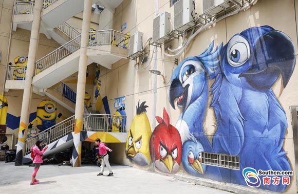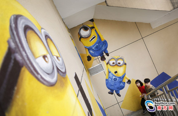 據(jù)南方網(wǎng)報(bào)道,近10米高憨態(tài)可掬的大臉貓、視覺逼真的3D隧道、一群動(dòng)作各異的小黃人沿著樓梯出現(xiàn)在各個(gè)角落……一幕幕奇異的景象出現(xiàn)在了中山市石岐區(qū)華佗新村富榮花園樓下的墻體上。這些形態(tài)逼真,色彩艷麗的墻繪作品,讓這個(gè)老小區(qū)增添了時(shí)尚文化氣息,吸引了不少路過(guò)的年輕人駐足拍照留念。據(jù)悉,華佗新村富榮花園樓下的商鋪已經(jīng)空置多年,一家企業(yè)以文化創(chuàng)意為主題進(jìn)行項(xiàng)目改造,為了吸引更多市民的注意,專門邀請(qǐng)了專業(yè)團(tuán)隊(duì)花了近半個(gè)月時(shí)間打造了這一些墻繪作品。