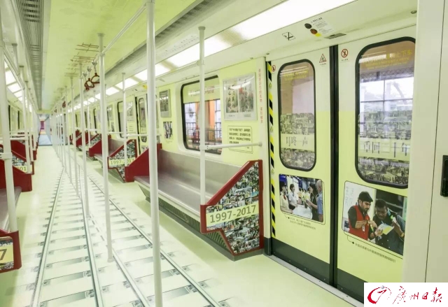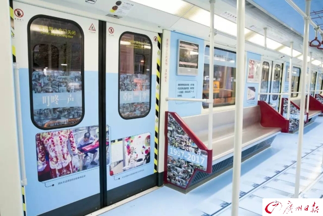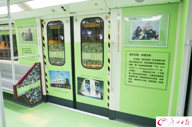 為了慶祝開通運(yùn)營20周年,廣州地鐵第一列車(一號(hào)線0102車)變身“回憶專列”,再次上線服務(wù)。1997年4月10日,一號(hào)線0102車從德國運(yùn)抵廣州黃埔港。20年來,黃色的外表、“叮咚叮咚”的關(guān)門聲音,都成為市民生活的一部分。