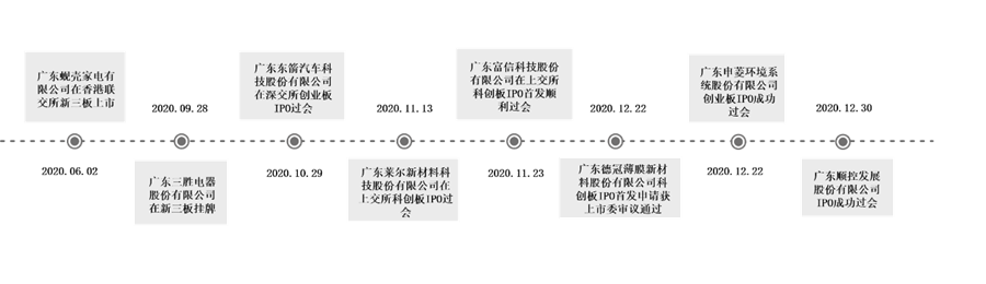 順德2020年8家新增境內(nèi)外上市(含過會)企業(yè)時間線。(央廣網(wǎng)記者 夏燕 制圖)