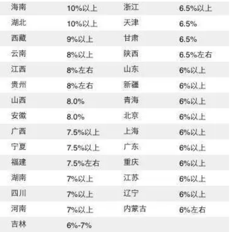 數(shù)據(jù)來(lái)源:各地統(tǒng)計(jì)局或政府工作報(bào)告