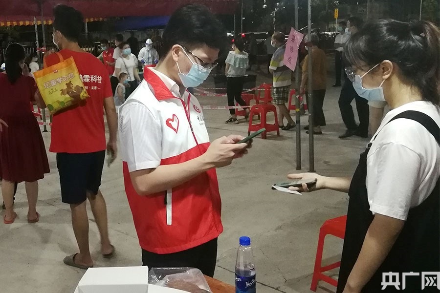 中國銀行中山東區(qū)支行志愿者有序協(xié)助開展核酸檢測工作。(央廣網(wǎng)發(fā) 通訊員供圖)