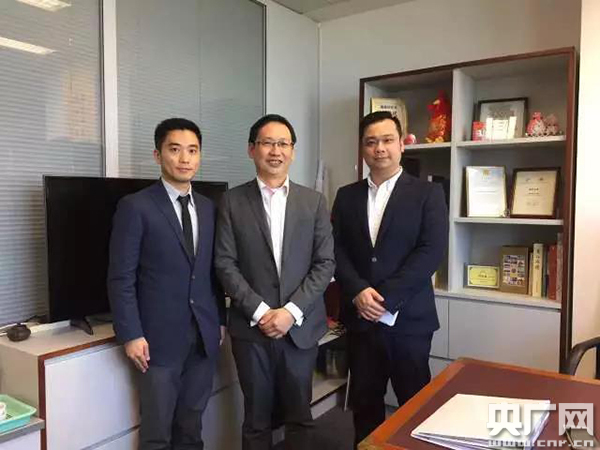 香港特區(qū)立法會(huì)議員柯創(chuàng)盛(中)接受央廣記者羅武(左)與周偉琪(右)采訪(fǎng)