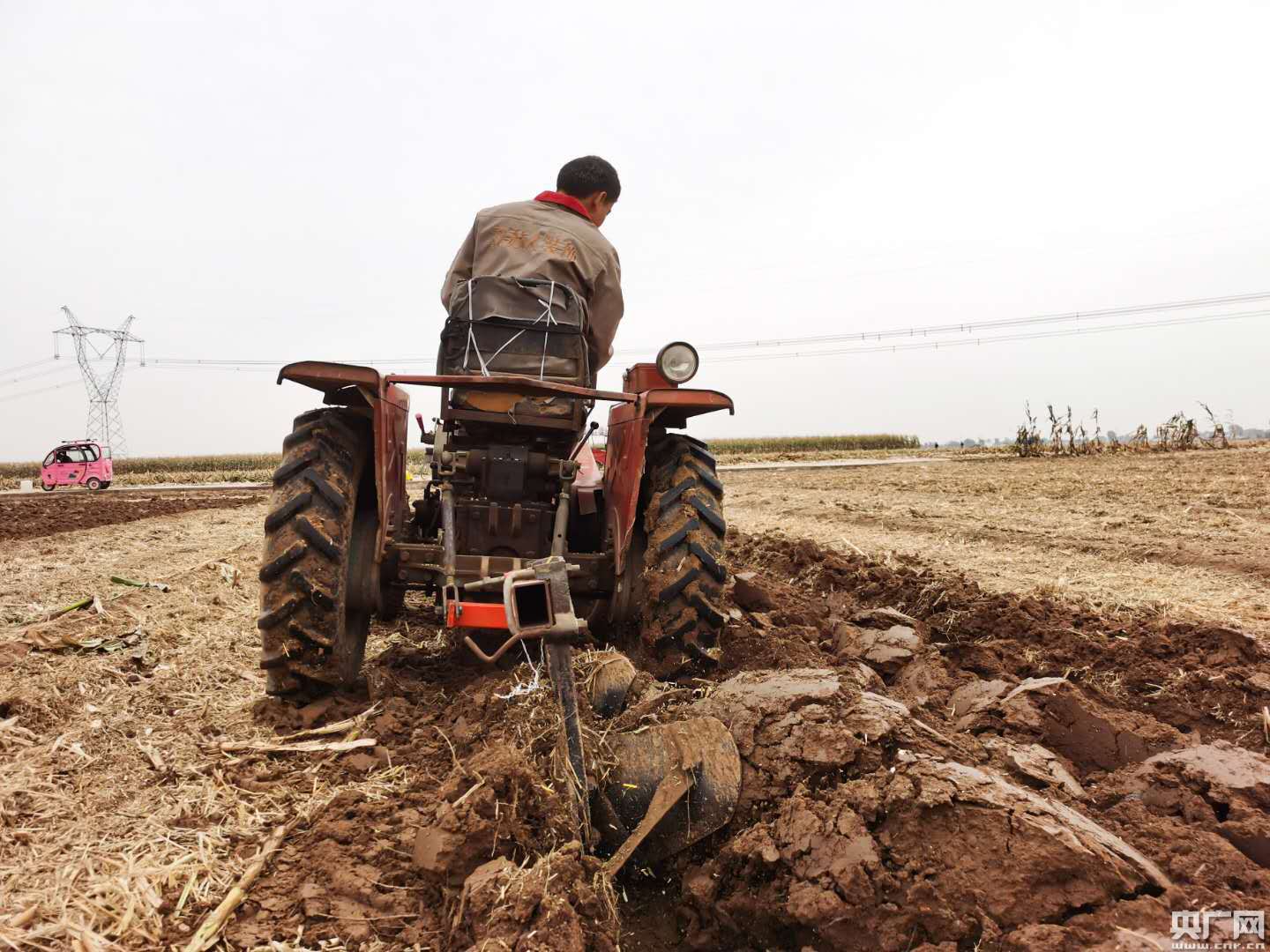 。▓D為10月5日,在滑縣老店鎮(zhèn)堯頭村,村民正在用拖拉機(jī)農(nóng)田中犁地。記者王紅霞 攝。)