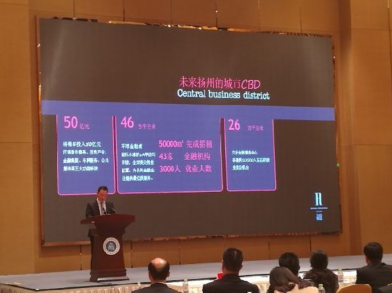 圖為揚州金融集聚區(qū)在上海招商推介會項目簽約現(xiàn)場