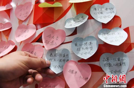 圖為寫(xiě)滿祝福語(yǔ)的“愛(ài)心牛肉面”便利貼!钇G敏 攝