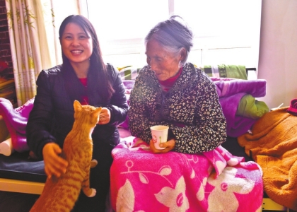 劉琳輕輕推開門,朝里張望,奶奶正在睡覺(jué),窩在奶奶懷里的貓豎起耳朵,一直看著她。這只貓叫“鐺鐺”,劉琳去學(xué)校上課的時(shí)候,就只有鐺鐺陪著奶奶。坐在床沿,看著睡夢(mèng)中的奶奶,劉琳露出了微笑。