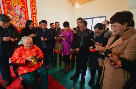 1月31日正月初四,革命老區(qū)浙江省四明山余鮑陳村張夏芬老人迎來(lái)了百歲壽慶,老人用微信給前來(lái)祝壽的親朋好友發(fā)送紅包。