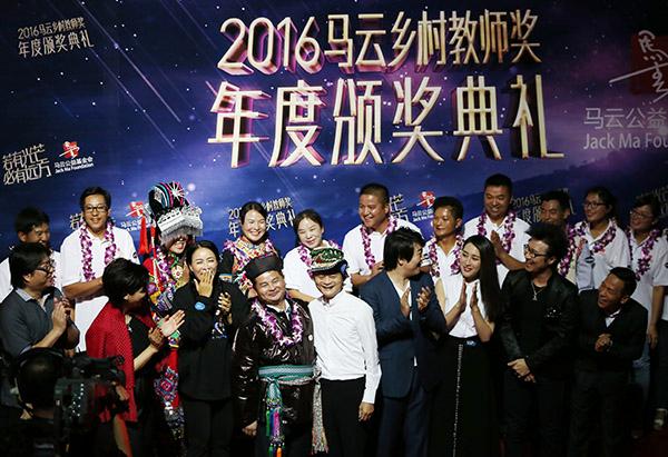 馬云與2016屆“馬云鄉(xiāng)村教師獎(jiǎng)”獲獎(jiǎng)教師合影