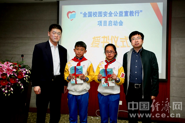 啟動(dòng)儀式上,“全國(guó)校園安全公益宣教行”項(xiàng)目向其對(duì)口學(xué)校北京市海淀區(qū)星火小學(xué)學(xué)生贈(zèng)送安全教育讀本。