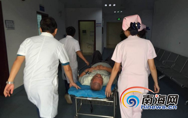 老人被送至?谑械谒娜嗣襻t(yī)院搶救。南海網(wǎng)記者馬偉元 攝