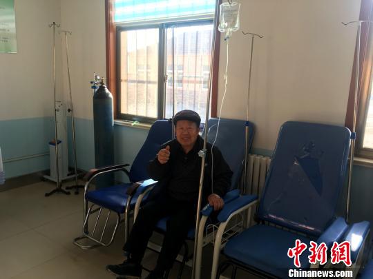 圖為75歲的村民張尚中在中心村衛(wèi)生室輸液。談到現(xiàn)在就醫(yī)的便利,他豎起大拇指。 李英 攝