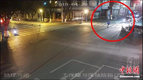 云南保山市交警支隊(duì)民警近日在調(diào)取一交通事故監(jiān)控時(shí)發(fā)現(xiàn)感人一幕。