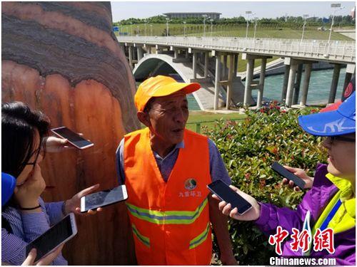 5月28日,記者跟隨“水到渠成共發(fā)展”網(wǎng)絡(luò)主題活動一行走進河南南陽,見到了李進群老人。他皮膚黝黑,穿著一件橘色馬甲,左手拿著一個塑料桶和一把專門用來撿拾垃圾的火鉗。他告訴記者,一年365天,他差不多有300天都要在壩區(qū)周圍轉(zhuǎn)一圈,撿垃圾,護樹木,路壞了修路,橋壞了補橋。如果遇到往水庫里扔垃圾的游客,就上前制止!案蛇@些活兒沒有報酬,全憑自愿”,而且一堅持,就是48年。