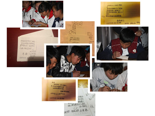 孩子們認(rèn)真地回復(fù)明信片