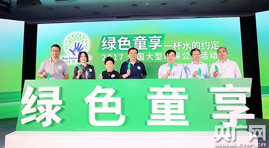 指導單位、主辦單位領(lǐng)導和趙忠祥、白巖松、鄧亞萍、斯琴格日樂等公益名人正式啟動“綠色童享·一杯水的約定”2017全國大型環(huán)保公益活動。