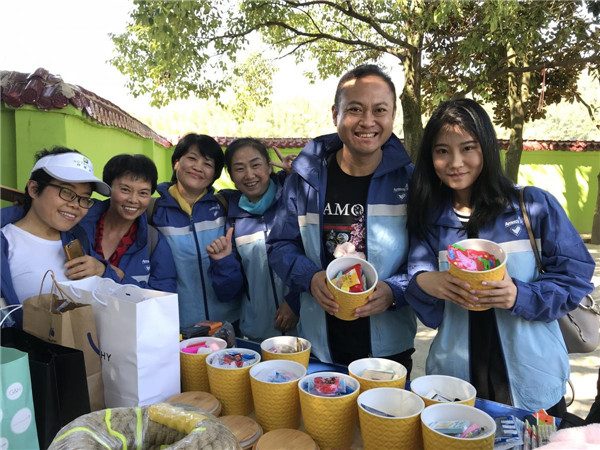經(jīng)過三小時(shí)的車程,終于到達(dá)了目的地,車輛陸續(xù)?吭诼愤厱r(shí),已經(jīng)有不少孩子圍了上來(lái)質(zhì)樸的臉龐、笑臉盈盈的,甚是可愛孩子們一點(diǎn)也不認(rèn)生,很快就和志愿者們嬉笑打鬧成一團(tuán)。