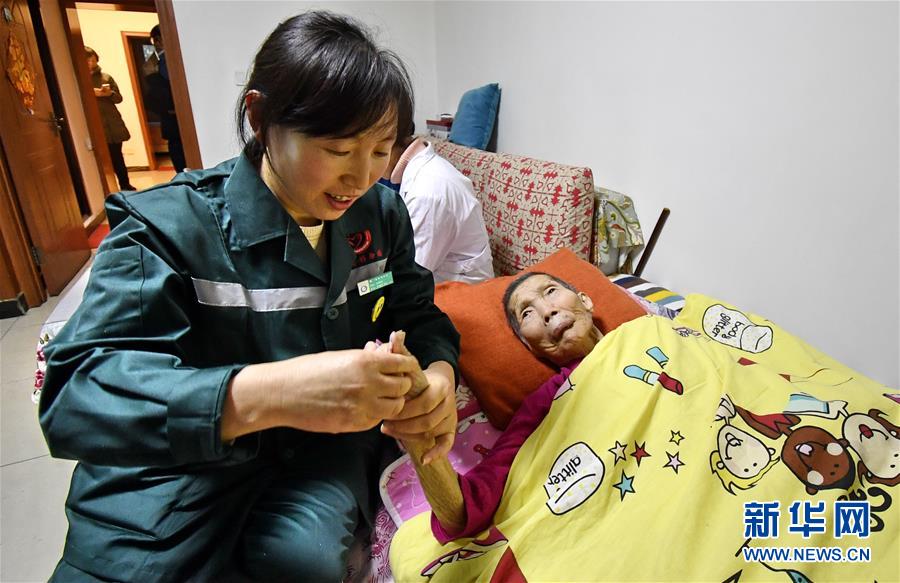 12月17日,豐臺(tái)區(qū)太平橋街道溫馨精康園員工在照顧失智失能的王秀珍老人,為她的家人提供短期“喘息服務(wù)”。