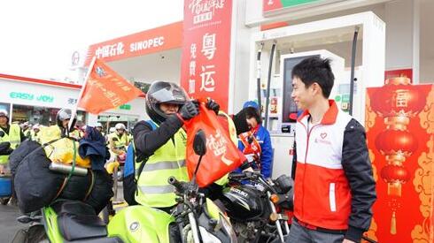 人民網(wǎng)佛山1月21日電(王紹紹)1月21日,正值春運(yùn)首日,中國(guó)石化攜手廣東共青團(tuán)“情暖驛站 滿愛回家”大型愛心公益活動(dòng)正式啟動(dòng)。在佛山龍山加油站現(xiàn)場(chǎng),上百輛“返鄉(xiāng)摩騎”在工作人員的指引下有序排隊(duì),等待免費(fèi)加油,準(zhǔn)備踏上回家的路。