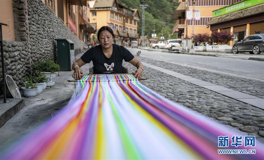 4月13日,云南省貢山縣獨(dú)龍江鄉(xiāng)村民和秋麗在家門口編織獨(dú)龍?zhí),她還在街邊開了一家燒烤店。