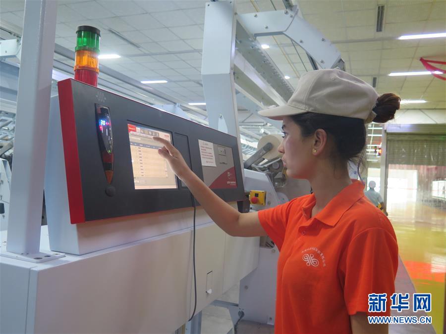 麥爾哈巴在紡織車間操作自動化系統(tǒng)(5月17日攝)。