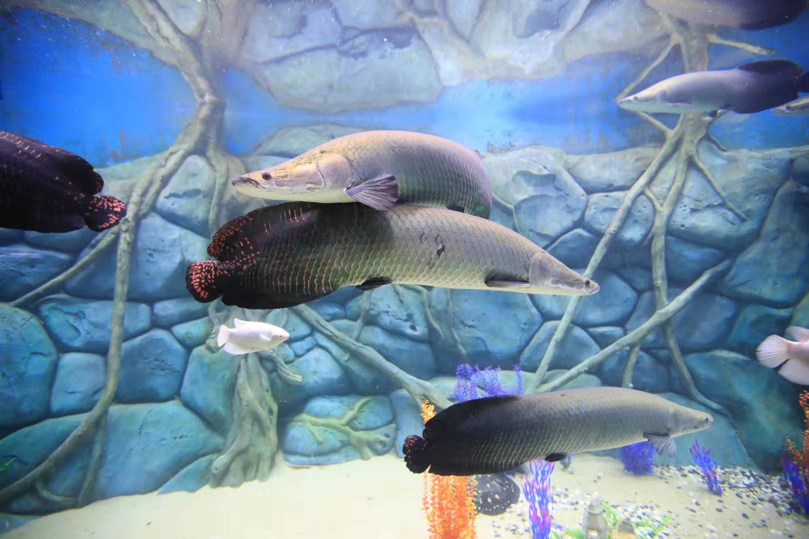 “海世界”內的是一條“沉船造型”的海底隧道,隧道頂部的水母燈,讓人仿佛置身于海洋中。超大型展缸內,“美人魚”正與5000多尾黃金鲹上演“人魚傳說”的故事。
