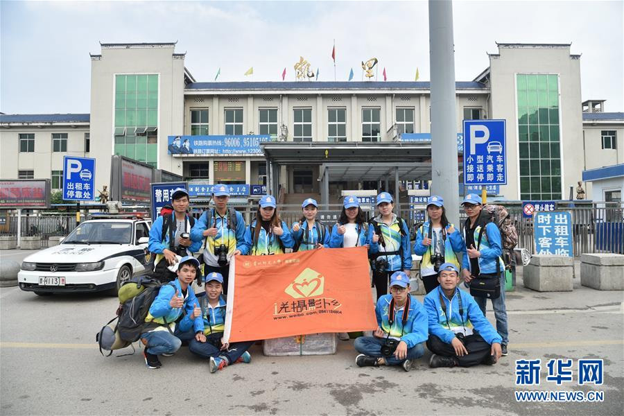 全家福第16次拍攝團(tuán)十二名隊(duì)員在凱里火車站合影(4月29日攝)。