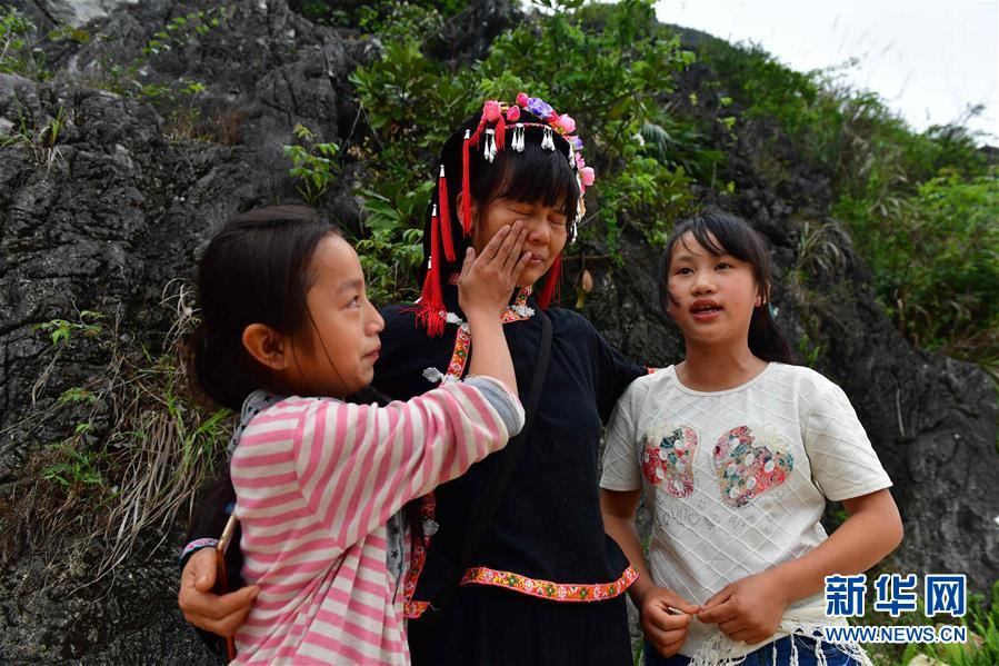 在廣西大化瑤族自治縣板升鄉(xiāng)弄冠村開展公益活動后,唐翠玉被孩子們送別的歌聲感動落淚(4月25日攝)。