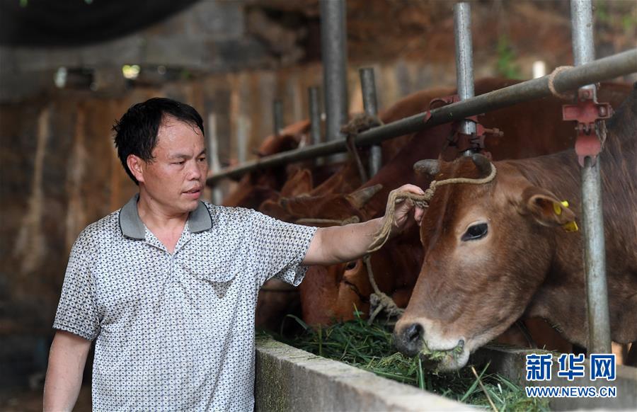 4月24日,在廣西都安瑤族自治縣隆福鄉(xiāng)隆旺村三叉屯,羅仕林在查看牛的生長(zhǎng)情況。
