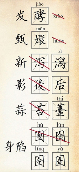 七、在法制新聞報道中,“囹圄”一詞常被誤為“囫圇”。今年影星張國立在一份因兒子張默吸毒而代其道歉的聲明中說兒子“目前又身陷囫圇,暫不能對公眾有一個交代”,“囹圄”讀作lnɡyǔ,意思是監(jiān)獄!班駠鳌弊x作hln,意思是完整、整個兒的。
