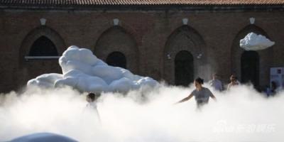 作品《浮云》因?yàn)閰⒓恿?011年的第54屆威尼斯雙年展而受到關(guān)注,作品采用特別技術(shù)飄浮于低空,作品可隨溫度、日照、晴、雨等天氣變化自動(dòng)升降,觀眾可在云朵間自由穿行,他是想在中國(guó)館門前制造一種具有禪意空靈的夢(mèng)幻氣氛。這樣一件作品因?yàn)閰⒓恿送崴闺p年展,而迅速成為受到國(guó)內(nèi)外觀眾關(guān)注的一件作品,當(dāng)然也是為蔡志松帶來(lái)煩惱的一件作品。