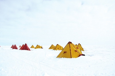想象一下,在零下20多度的天氣條件下,直接睡在冰上是什么感覺?“除了兩三個防潮墊,身體以下2000米都是冰,帳篷里的溫度最多不超過零度。”最冷的時候是從帳篷里出來的一刻,每天用手系帳篷帶是最痛苦的一件事!笆稚斐鍪畮酌刖捅粌鼋┝,系不住帳篷帶!边@樣的后果是很嚴(yán)重的,王飛騰笑著說,有一天帶子沒系緊,回去睡覺時發(fā)現(xiàn)帳篷里已積了半人多高的一堵雪墻,極光盆地的風(fēng)吹雪太厲害了。