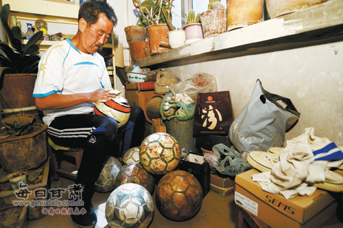 為保持肺活量和體能,他堅(jiān)持每天早晨從家中小跑至球場(chǎng);為引領(lǐng)更多人熱愛足球,他和身邊的一些年輕球友組建了一支業(yè)余球隊(duì);而為了調(diào)劑體能,他背包中還常常備有自己調(diào)劑的“營(yíng)養(yǎng)液”。正像他說的那樣,“畢竟現(xiàn)在歲數(shù)大了,踢球真不容易!”為紀(jì)念自己這段不同尋常的歷程,這位古稀老人每過一年,就為自己收藏一件以年齡做號(hào)碼的球衣,如今,這個(gè)號(hào)碼已排到了72!扒靶┨礻(duì)友們還把一個(gè)印有80號(hào)的球衣拿來,他們說想讓我一直踢到80歲……”說到這里,老人的話語開始哽咽,看得出來,是足球給了他一生的快樂。